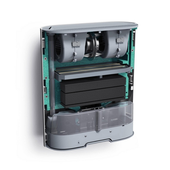 Повітря з вулиці, проходячи через вентиляційну систему, потрапляє всередину пристрою. Проходить через каскад змінних фільтрів, які затримують в собі: