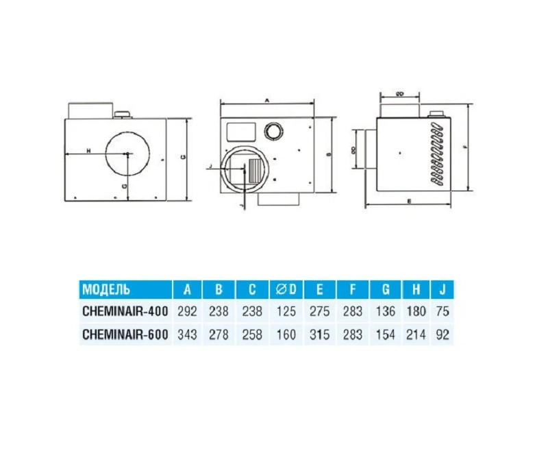Витрата повітря вентилятором CHEMINAIR становить 400 м³/год, що також забезпечує ефективний обігрів суміжних кімнат.