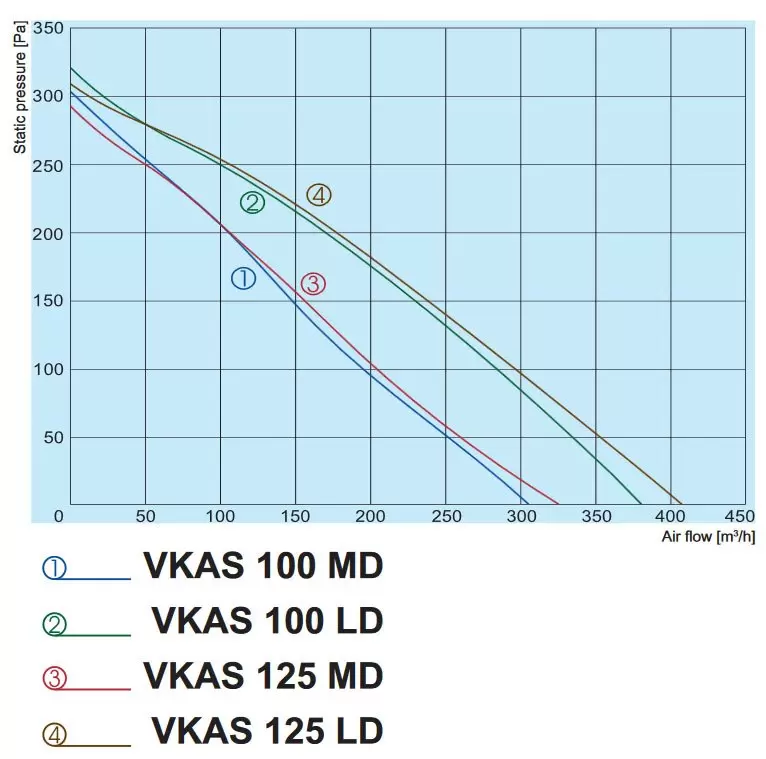 Не підходять для транспортування вибухонебезпечних газів, вентилятор працює в режимі витяжки або припливу повітря, в залежності від монтажу в системі повітроводів. Канальні вентилятори Salda VKAS мають діаметри патрубка від 100 до 315 мм, при цьому досить продуктивний.